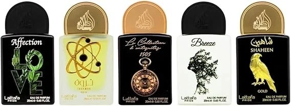 A luxurious and versatile fragrance collection from the prestigious Pride line. This elegant gift set features five expertly crafted 20ml Eau de Parfum sprays, offering a diverse range of rich, modern, and oriental-inspired scents perfect for every mood and occasion.