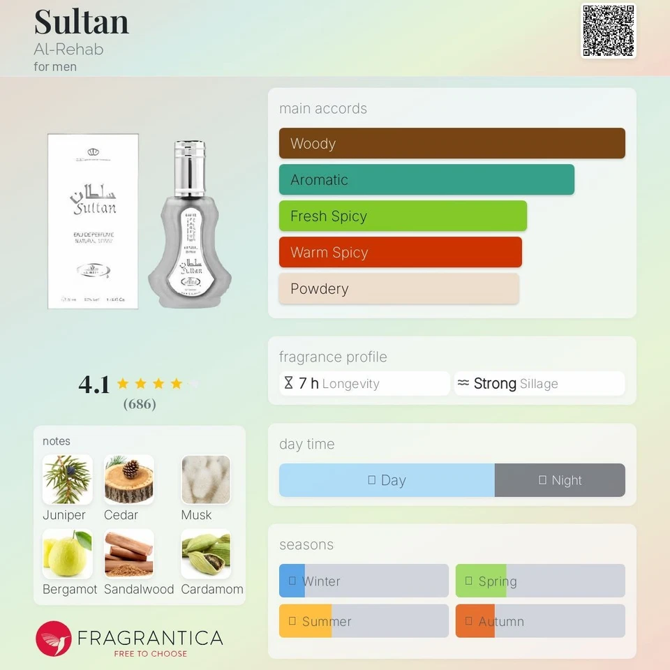 A bold and timeless oriental fragrance that embodies strength, tradition, and elegance. Sultan by Al Rehab blends warm woods, rich amber, and subtle spices to create a powerful scent that feels classic, confident, and deeply masculine.